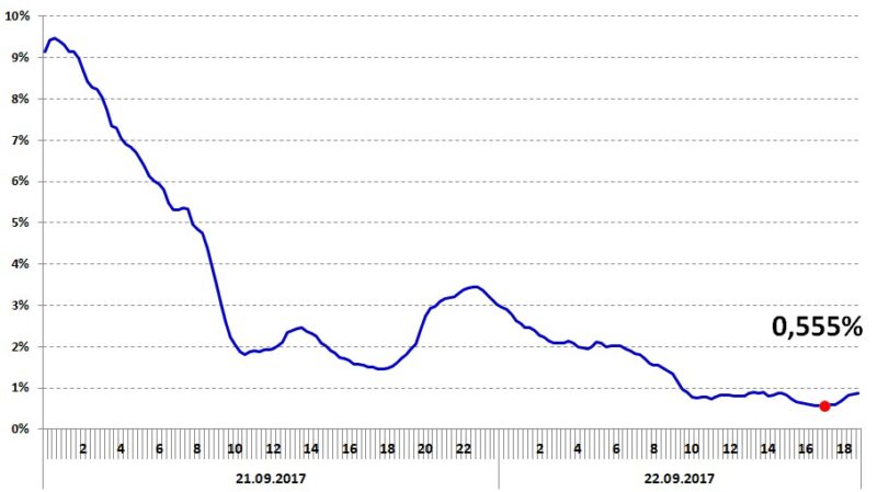 Klockan 17:00 den 22/9 blev effekten 0,555 %.