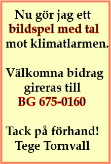 Det kostar pengar. Han arbetar själv helt ideellt, men kan inte lägga ut de summor som produktionen kräver. Stöd kampen med ett bidrag till hans bankgiro. Han tar fram ett bra verktyg, som vi alla kan referera till, för att sprida upplysning om den gigantiska bluff som “klimatkrisen” är.