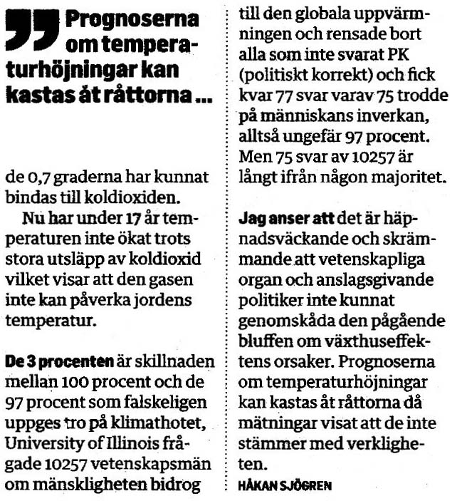 Jag tyder detta så att IPCC:s trovärdighet kan börja diskuteras, dock inte i rikspressen. DN och SvD refuserar alla våra försök att korrigera de helt felaktiga påståenden, som ständigt upprepas i deras debattartiklar om klimatet, över 30 det senaste året.