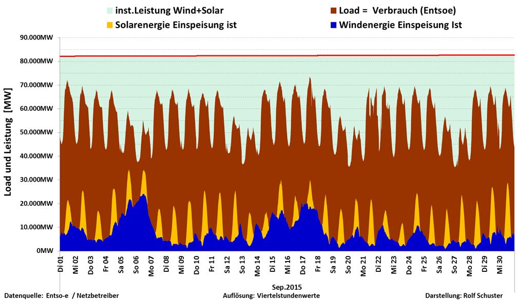 Vi ser att även denna månad har blåsten varit svag under långa perioder. Jämfört med totalt installerad effekt har sol- och vindkraft levererat: