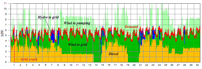 Förbrukningen är som störst en kall vinterdag i december–januari. Toppen nås på morgonen före klockan 9 eller efter klockan 15 på eftermiddagen. Vid båda tillfällena är det mörkt och solceller ger garanterat noll.