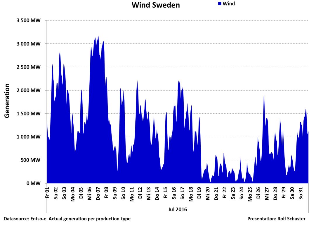 Notera att under sex dagar med början den 20/7 var effekten från vindkraft mycket liten och nära noll vid fyra tillfällen. Under de dagarna var effekten från vindkraft låg även i Tyskland, se föregående post.