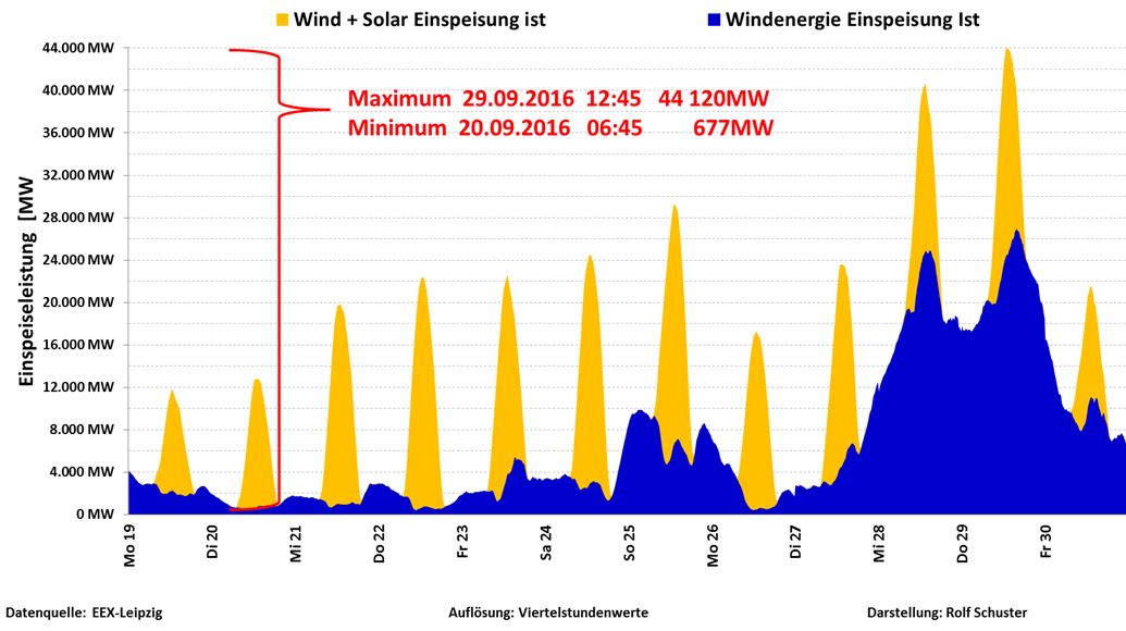 Figur 4. Sol och vind levererar genomsnittligt bara 13 % av märkeffekten. Minimum är mindre än 1 % ! ! !