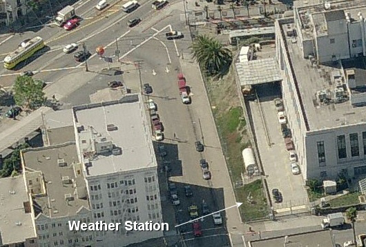 Figur 2. En mätstation i San Francisco är helt omgiven av höga byggnader och asfalterade gator.