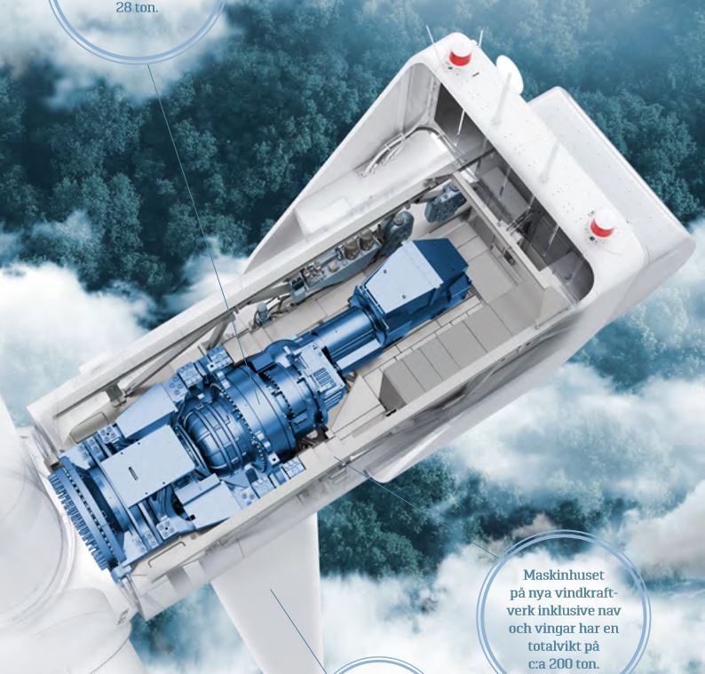 Dagens vindkraftverk är jättestora maskiner. 200 ton kan jämföras med ett SJ-lok som väger 90 ton. Två sådana skall alltså valsa runt hela horisonten på 100 meters höjd.