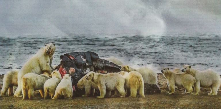 De som matats blev kvar där, när iskanten och sälarna flyttade iväg. De förlorade förmågan att finna mat. Den anrda gruppen hade ett svårt år, men återhämtade sig och levde vidare i välmåga.