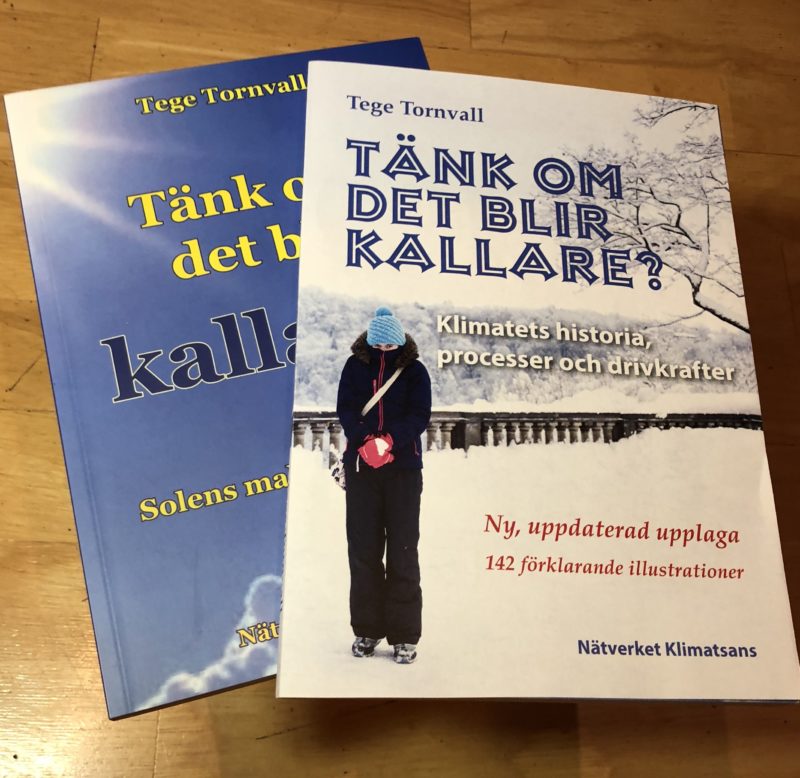 Skall beställa ett exemplar och njuta av, det behövs balans till alla domedagsprofetior vi dagligen matas med. Man får en känsla av att alarmistblocket faktiskt vet att solaktiviteten är i avtagande och varit så de tre senaste solcyklerna. Man vet vidare också att sannolikheten är mycket stor för att temperaturerna kommer att sjunka inom snar framtid. Därav sänkningen av 2C graders målet till 1,5C för att man inser att 2 grader kommer vi inte att uppleva förrän om 100 år om utvecklingen håller i sig. Vilket den inte kommer att göra. Temperaturökningen avstannade 1998 och har i stort sett legat still i 20 år med en svag nedgång. Alarmisternas främsta argument Global Warming är nu obsolet.