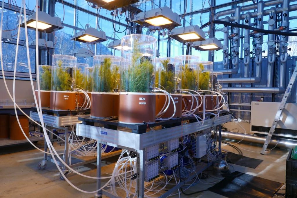 Försök vid Karlsruhe Institute of Technology, KIT, där tallplantor studerades under 421 ppm CO₂ och 867 ppm CO₂