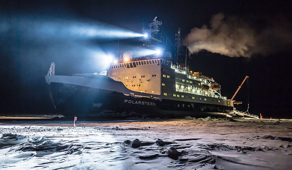 Figur 1. Isbrytarklassade Polarstern är bas för en expedition med forskare från 19 länder