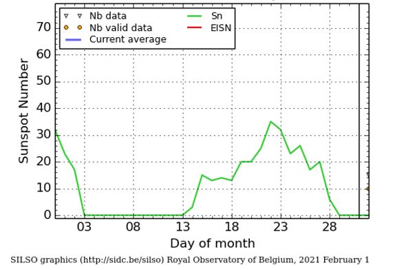 Figur 2. Antalet solfläckar varje dag under januari 2021