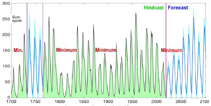 Prognosen visar låg aktivitet de tre närmaste cyklerna. Willie Soon ser det som bekräftelse på sina förutsägelser för 10 och 15 år sedan.