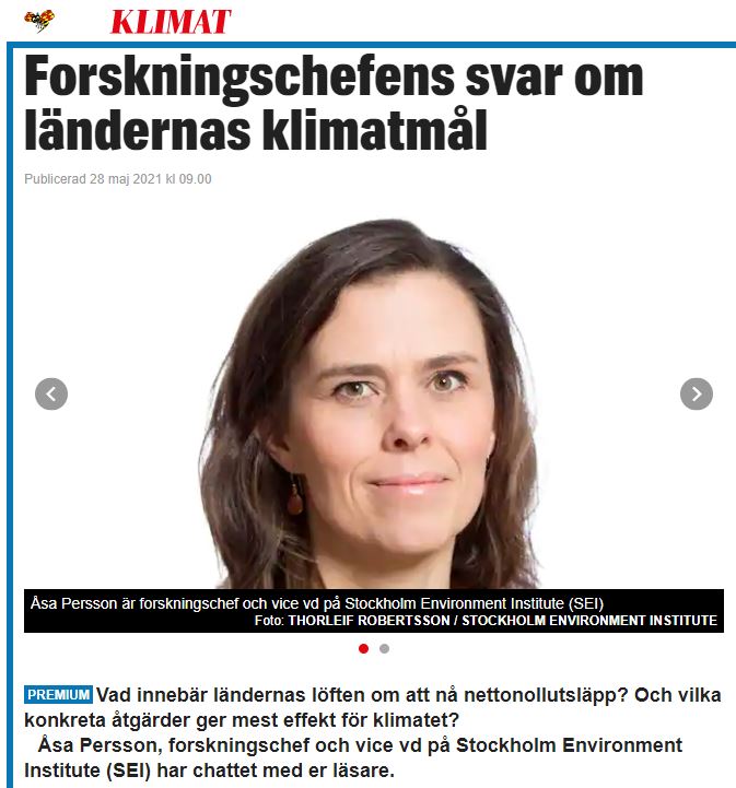 Även här är det den ständiga propagandan jag vill illustrera. Här intervjuas forsknings-chefen på Stockholm Environment Institute, SEI, som huvudsakligen finansieras med skattemedel. SEI leddes under 8 år av Johan Rockström. Beträffande klimatet lär det fortsätta i hans spår inom en helt fiktiv värld av datorsimuleringar och spekulationer om den hemska framtiden. Att kalla sådant för “forskning” är avsiktligt vilseledande.