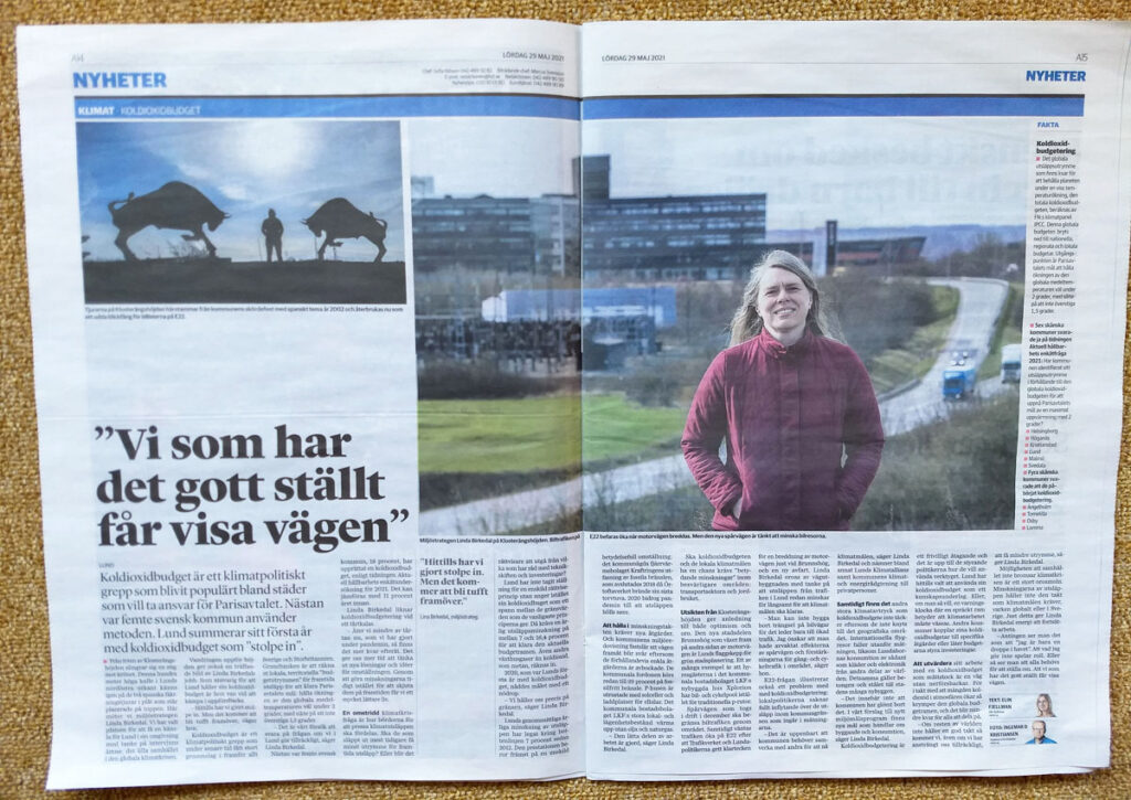 Sedan intervjuas Lunds “klimatstrateg” Linda Birkedal, som beskriver Lunds åtgärder. Hon redovisar pliktskyldigast vad hon är anställd för att göra, ex.vis: