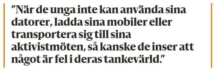 När den unga generationen inte kan använda sina datorer, ladda sina mobiler eller transportera sig till sina aktivistmöten, så kanske de inser att något är fel i deras tankevärld.