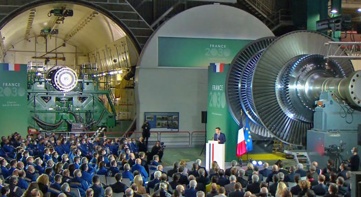 Emmanuel Macron åkte till Belfort för att officiellt tillkännage EDF:s övertagande av General Electrics kärnkraftsgren. Avtalet omfattar tillverkning av Arabelle-turbiner och Gigatop-generatorer i Belfort.