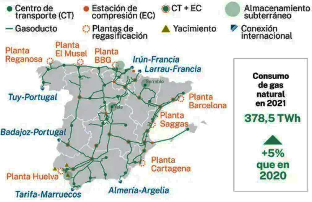 Fracking har gjort USA det till den största exportören av flytande naturgas i världen (LNG, Liquid Natural Gas), och överträffat t.o.m. Qatar. Framgångarna i USA ledde till ca hundra tillstånd för prospektering i Spanien. Av den gas Spanien konsumerar idag kommer 45 % från Algeriet och 10 % från Ryssland. Flera hamnar är utrustade för att ta emot LNG från tankfartyg. Det kräver dels tankar för lagring och dels utrustning för att förgasa vätskan innan den kan matas ut i ledningsnätet.