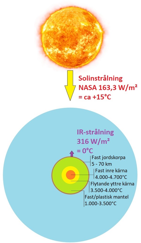Vad har jag fel i? Jag säger att mätningar visar att värmeflödet från jordens inre till ytan är försumbart. Är det fel ? Är mätningarna fel ?