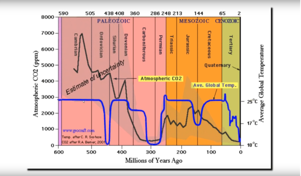Figur 3. Halten CO₂ och globala temperaturen under de senaste 600 miljoner åren