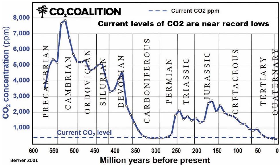 Dessutom, i motsats till vad som vanligtvis rapporteras, är CO₂ avgörande för livet på jorden. Utan CO₂ skulle det inte finnas någon fotosyntes, och därmed ingen växtlighet och inte tillräckligt med syre att andas.