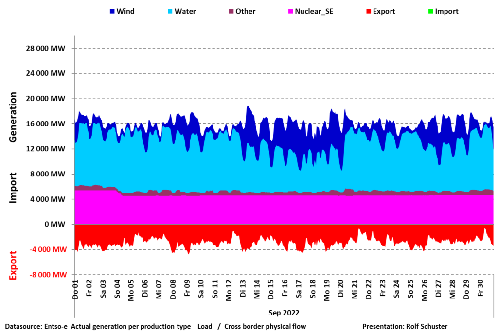 Figur 3 visar att vindkraften under september inte kunde ersätta de sex nedlagda kärnkraftsreaktorernas sammanlagda effekt 4000 MW.