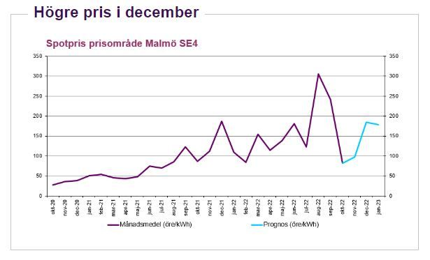 Bjäre Kraft har publicerat sin prognos för elpriset under december i elområde SE4