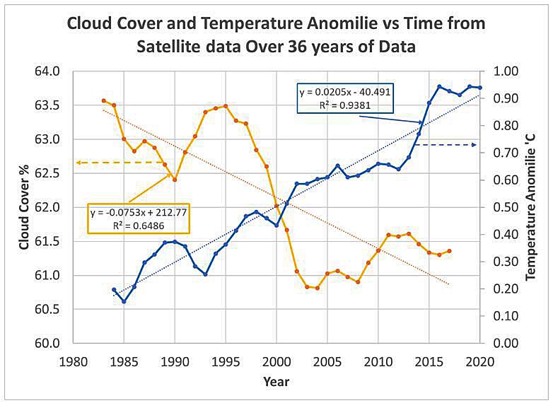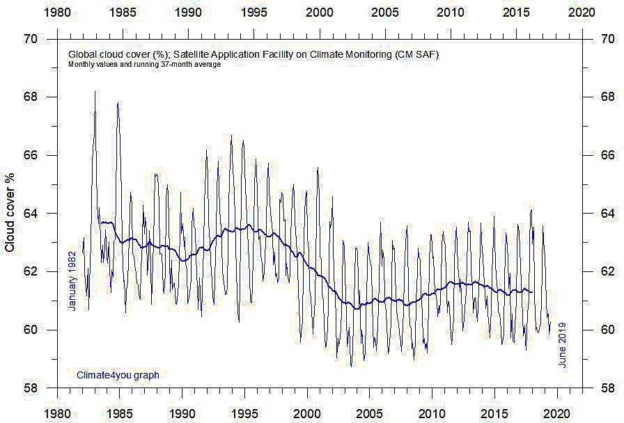 På ögonmått ser man att molnens täckning av Jordens yta de två senaste decennierna varit c:a 2 procentenheter lägre än tidigare. Bloggen WUWT refererar två rapporter med analyser av data från satelliter, vilka visar att molnens verkan är avgörande för klimatet på Jorden. Posten har följande rubrik: