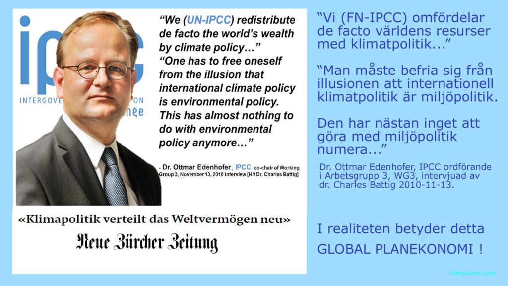 Elsa Widding (EW) anges av PW som ett slags orakel vad gäller opartiskhet, om jag förstår honom rätt. EW driver en väsentlig uppfostringskampanj för politiker och media. Tyvärr blev hon ‘dissad’ av sin partiledare, som pressad förklarade att det visst finns en ‘klimatkris’. Hon är kanske omedvetet just en del av den söndra/härska-agenda som är institutionaliserad av IPCC och FN och som jag försökte förklara ovan. Hon tror på koldioxidens uppvärmande effekt, i vilket avseende jag själv anser att hon är felinformerad fysikaliskt.