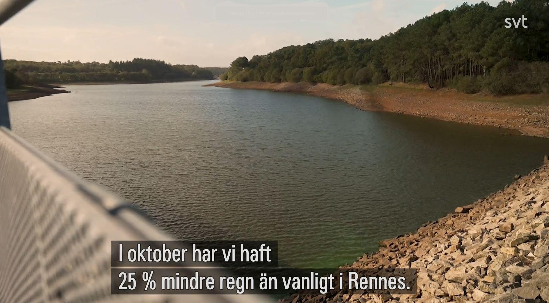 Men först och mest energiskt jobbar förstås SVT. Redan den 3/11 hade man ett reportage från Rennes i Bretagne, där man visade hur nivån i reservoaren för dricksvatten har sjunkit:
