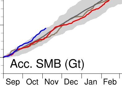Thorleif, Mats M: DMIs Polar Portal varnar uttryckligen för att blanda ihop ytmassbalansen och totala massbalansen. Det har påpekats i dessa spalter tidigare, så det borde inte vara en nyhet. (Lasse, du noterade detta).