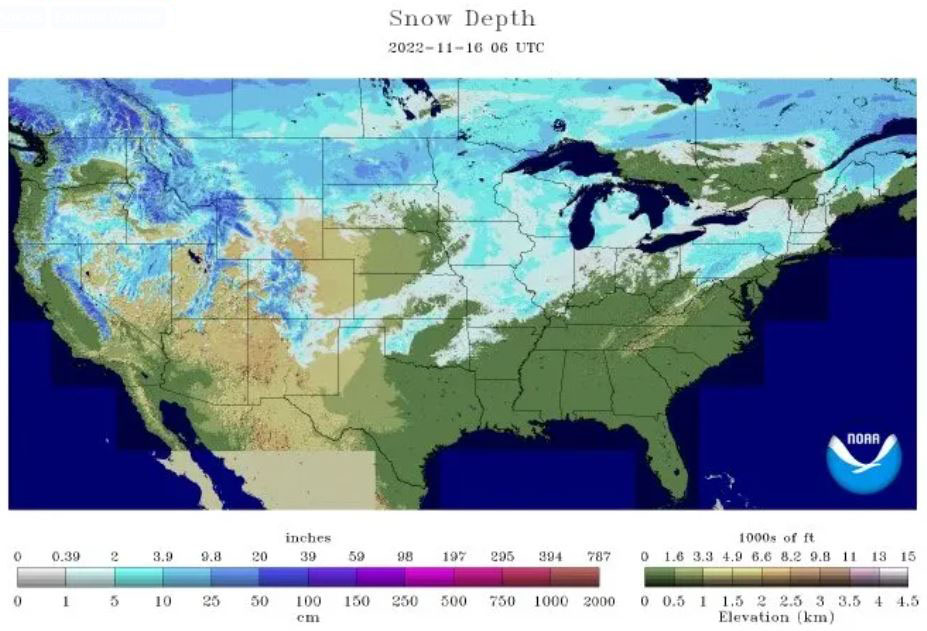 Figur 1. Snön täckte onsdagen den 16 november 41,1 % av de kon-tinentala 48 staterna