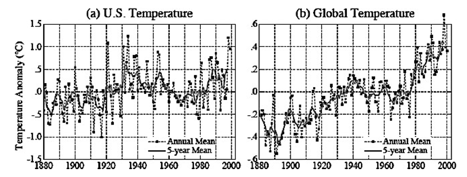 Den tydliga skillnaden kan hänföras till stationernas placering. I USA har man aktivt strä-vat att flytta dem ut från bebyggelse allt eftersom denna krupit ut från tätorterna. Detta har inte skötts lika sorgfälligt runt om i världen, varför temperaturerna där påverkats av den ökade bebyggelsen.