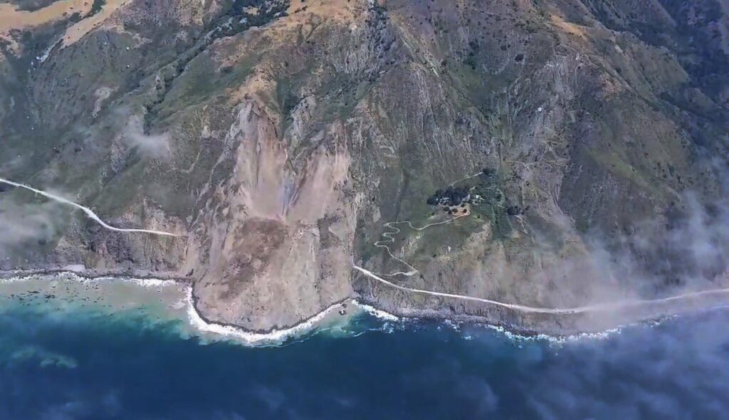 Figur 1. Jordskred blockerar den berömda kustvägen Highway 1