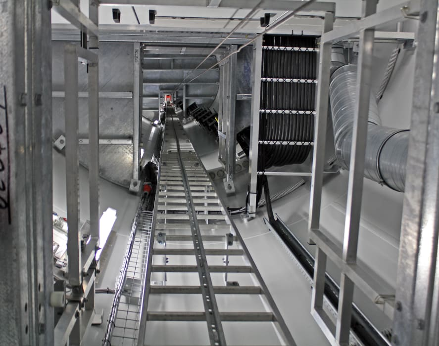 Så ser det ut inne i ett 100m högt torn till ett vindkraftverk, där Emilia Lidman arbetar.