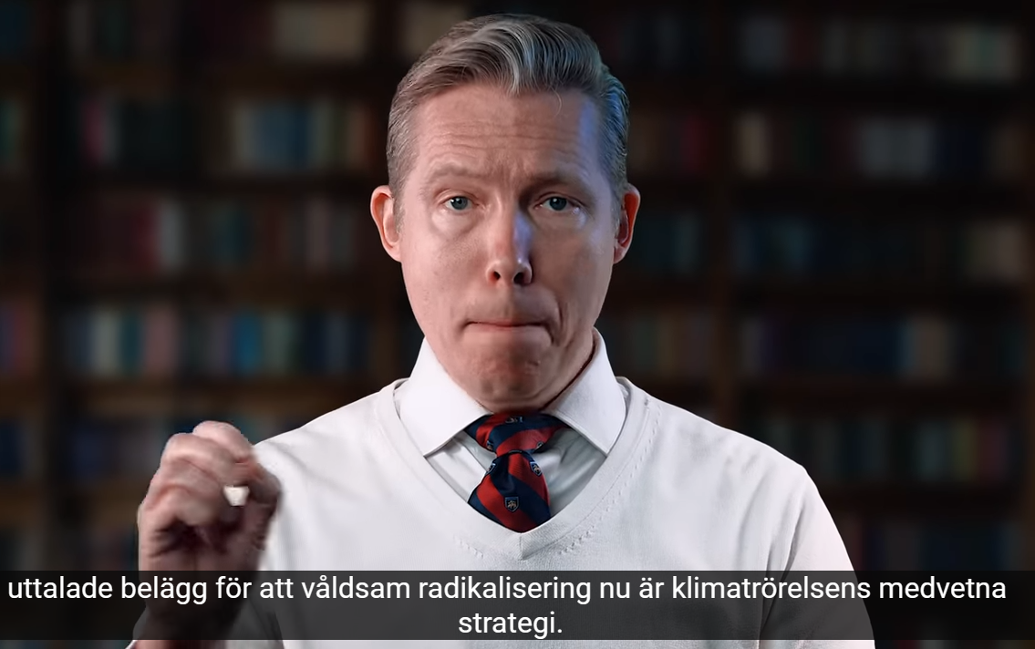 Notera de sekvenser han visar från ett panelsamtal arrangerat av ABF, som åtnjuter stöd av skattepengar. Alla deltagarna uppmanar till våld i den goda sakens namn. Där uppträder även f.d. vice statsminister Isabella Lövin, som biträder samma ideal. Jag har påtalat hennes totalitära syn sedan hennes debattartikel i SvD den 1/9 2018 där hon föreslog en “Global Klimatkris-Kommission” med uppgift att förmå alla länder att uppfylla “Parisavtalet”: