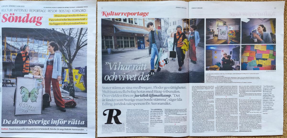HD/Sydsvenskan har ett “Kulturreportage” om Auroras stämning 2023-06-11. Det upptar FYRA helsidor inklusive förstasidan på “Kulturdelen”.