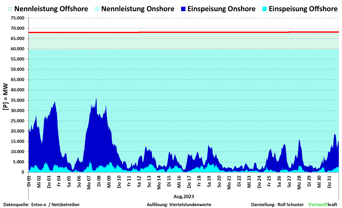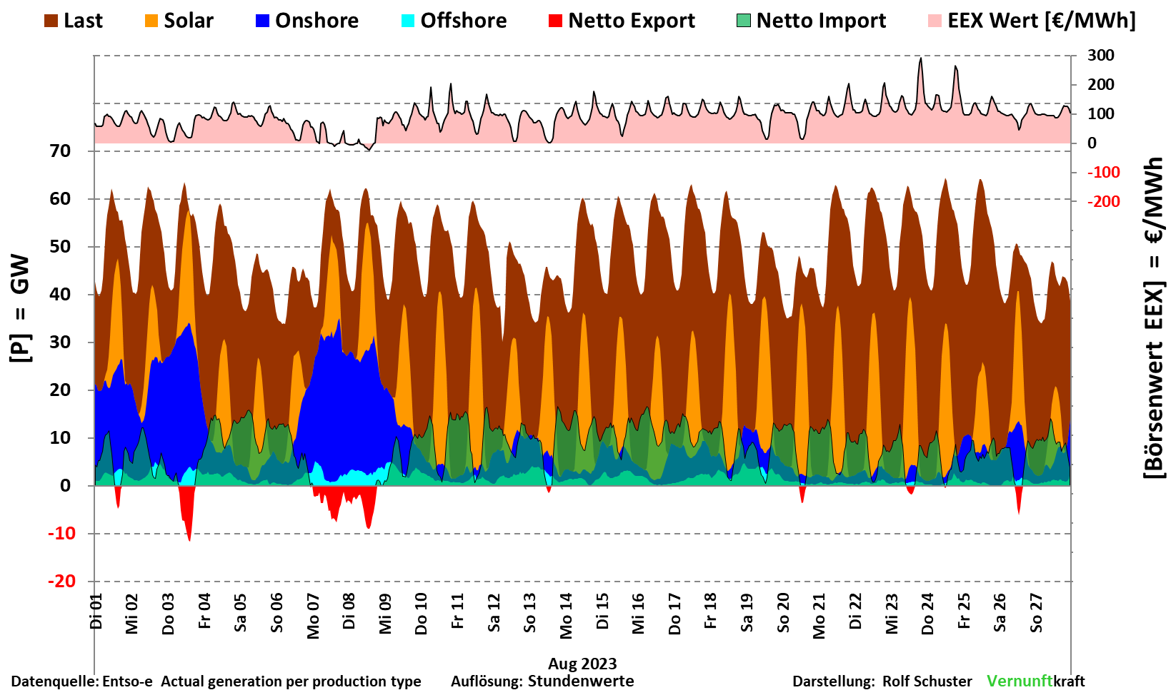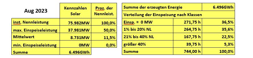 Solkraftens medeleffekt har minskat från 13,7 % av märkeffekten i juli till 11,5 % i augusti. Solens höjd över horisonten är på väg neråt.