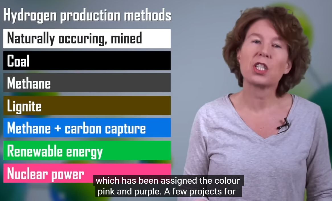 - Grå: Spjälkning av metan med utsläpp av separerad CO₂, den mest ekonomiska metoden.