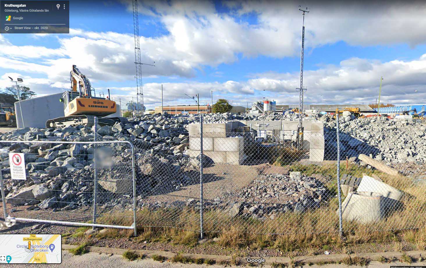 Stationen torde ligga där den vänstra masten står. Den tycks vara ett exempel på den sjuka som Anthony Watts rapporterat om i USA: Samhällets expansion kryper runt stationerna, så att de omges av värmeabsorberande byggnader och vägar med svart asfalt. Här finns nakna stenhögar nära stationen. De lagrar värme och utgör sedan en lokal “värme-ö”, UHI, Urban Heat Island. Den stör mätningarna som blir falska, men ändå rapporteras i de flesta media.