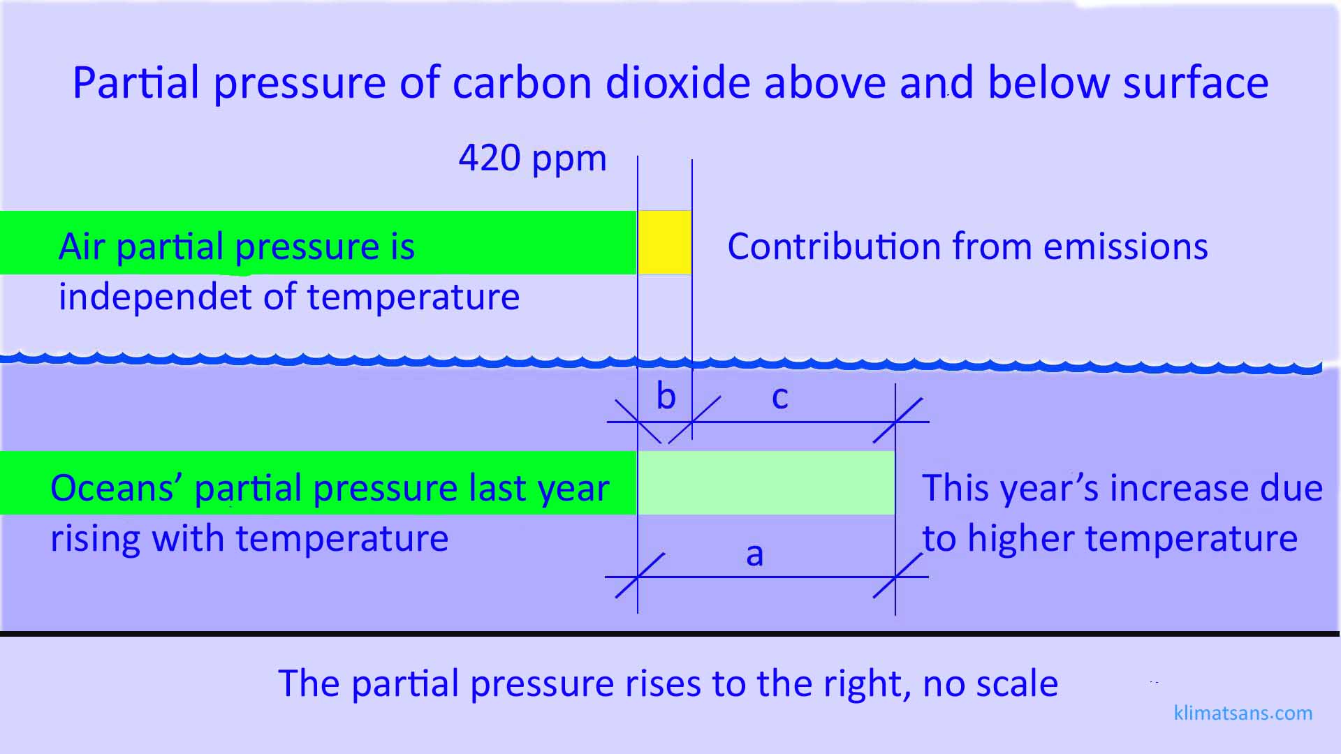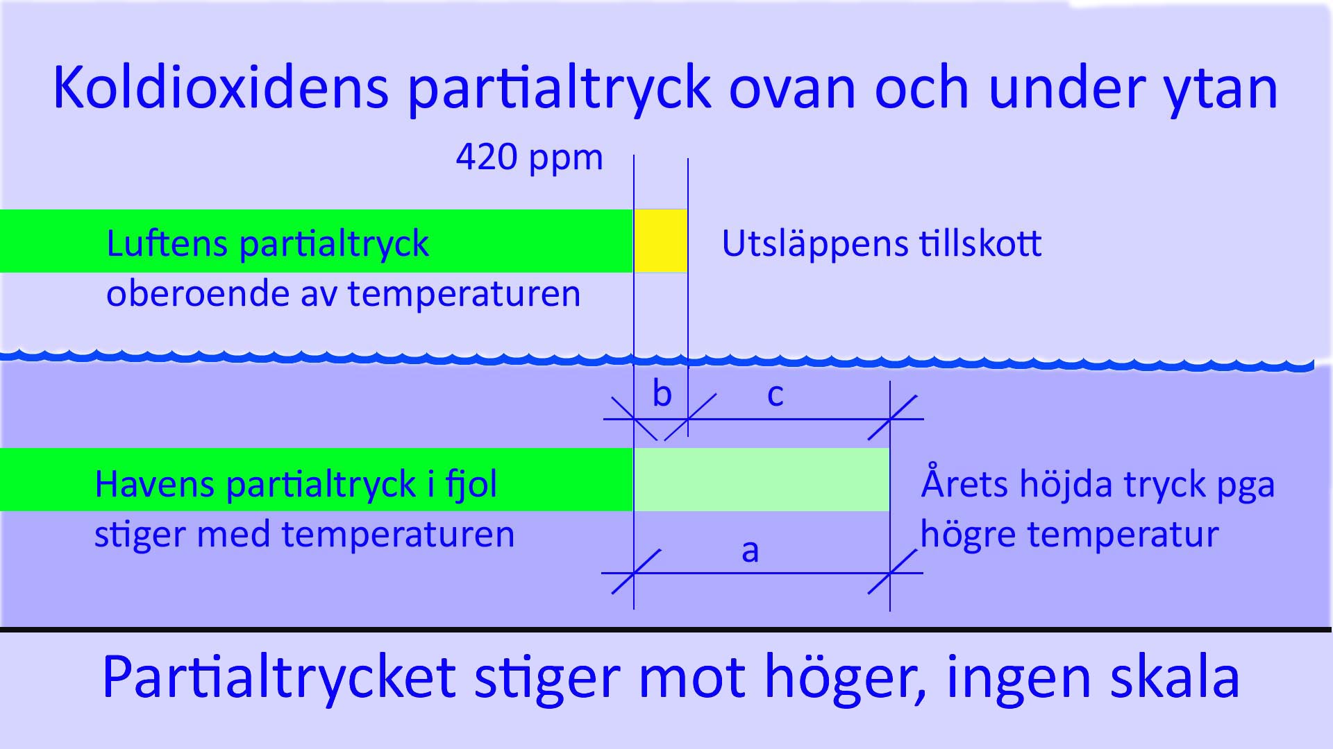 Partialtrycket i havens vatten stiger med beloppet (a) på grund av uppvärmningen.