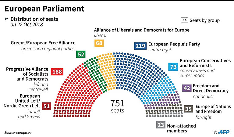 Figur 1. EU-parlamentets session-sal med 751 ledamöter