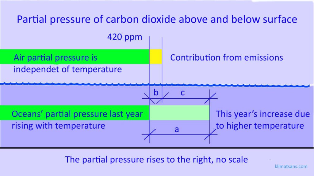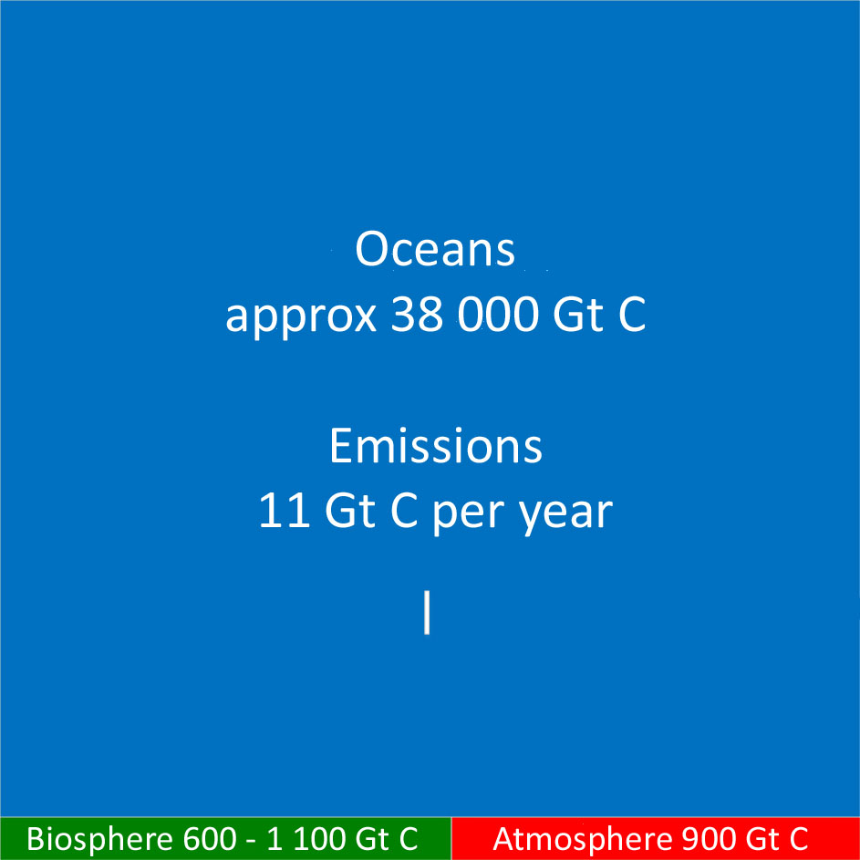 The exchange of carbon dioxide, CO₂, between the two therefore becomes efficient. Thus, we must consider the content of CO₂ in the oceans as the most important factor of the CO₂ content of the air.