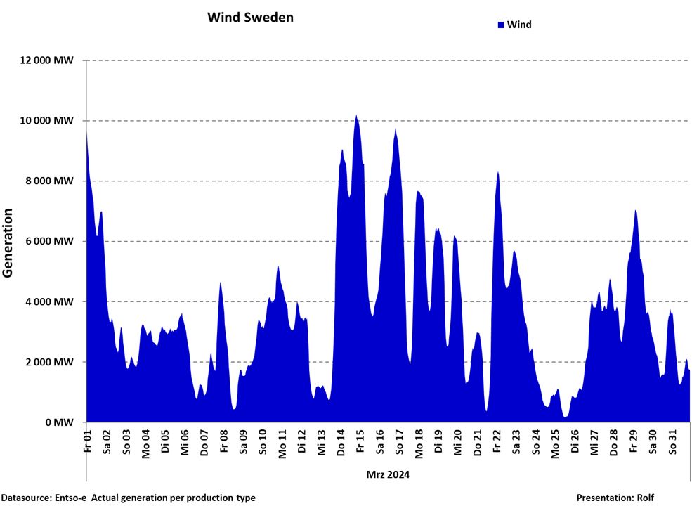 Att jämföra med installerad kapacitet c:a 17.000 MW. Vindarna har varit ogynnsamma. Som vanligt har svängningarna upp och ner varit dramatiska.