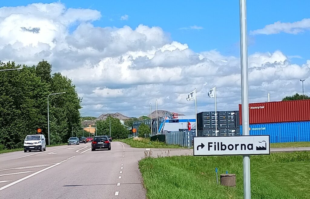 I bakgrunden höjer sig topparna av Filborna-tippens deponier.