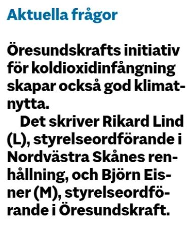 Journalisterna är vår tids präster och chefredaktörerna är biskoparna, Politiker, som leker kapitalister, tror att de kan sköta med vänsterhanden mellan de politiska mötena sådant som är heltidsjobb för verkliga kapitalister, S-politiker brukar dock ha någon affärsidé, något som ska tillverkas, må vara med svindlande förluster. Men här kommer nu ett par borgerliga politiker, M och L, som inte har tänkt tillverka någonting alls med den infångade koldioxiden, utan pengarna ska kastas direkt i sjön.. Leker de riskkapitalister, månntro? Inte undra på att lokaltidningen, som kallar sig oberoende liberal, inte vill ha något debatt. Oberoende av vad? Kanske sanning och konsekvens. Samt ansvar.